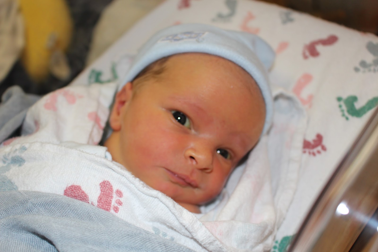 The big sisters came in shortly with all the grandparents after I got back to my room and had feeling back in my toes. Emma was ecstatic, of course! Hannah wasn't too sure at first, but quickly followed Emma's lead. Now she wants to hold him and kiss him all the time and says, "my baby", and giggles while pointing out all of his little features.